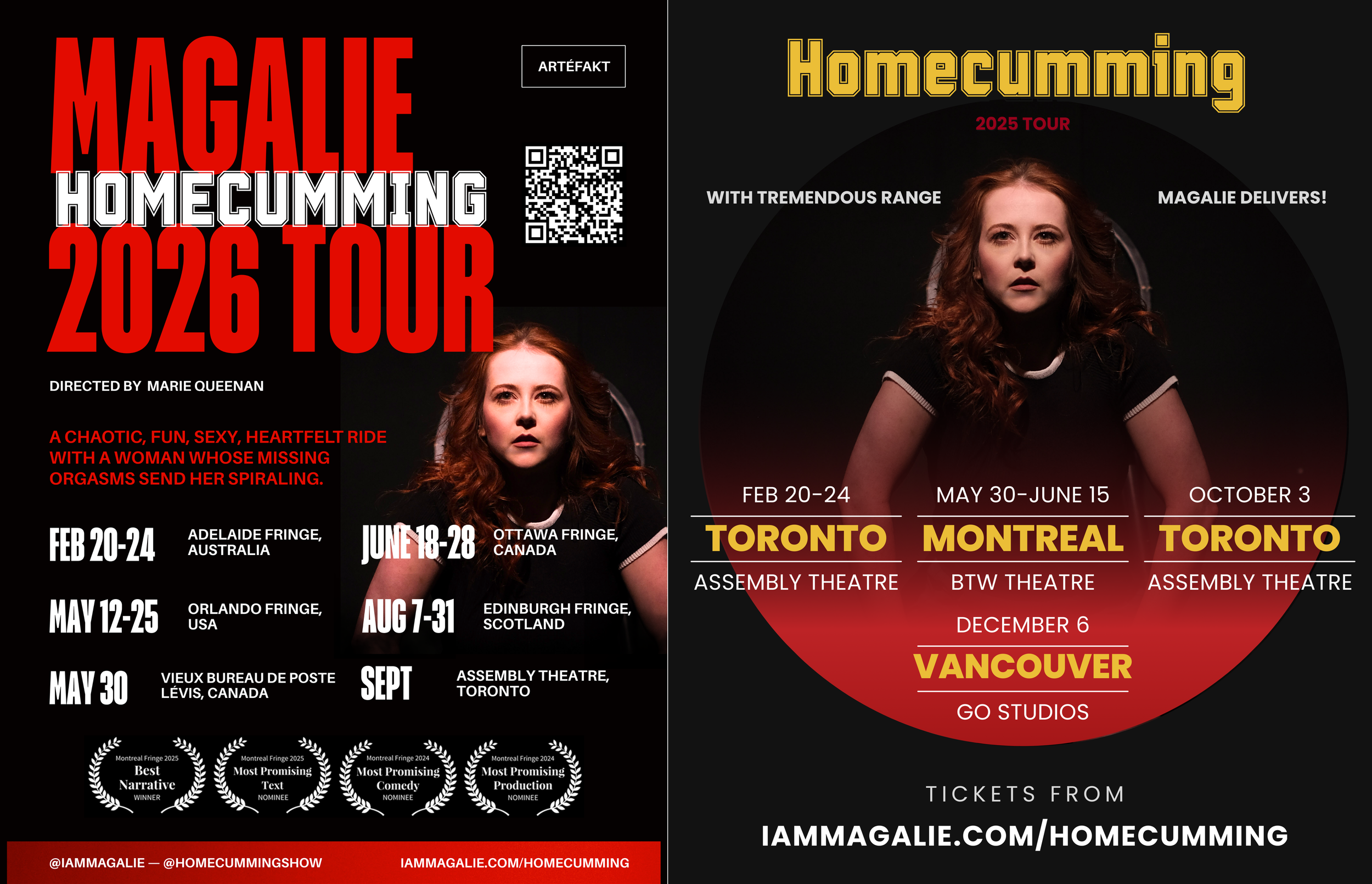 The show has already resonated strongly with Canadian audiences and critics alike, winning Best Narrative at the 2025 Montreal Fringe, earning a Best Text nomination, and receiving two Frankie Award nominations for Most Promising Comedy and Most Promising Production at the 2024 Montreal Fringe.